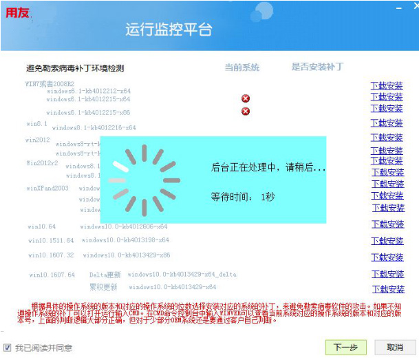 為了協(xié)助客戶預(yù)防和規(guī)避勒索病毒帶來的危害,U8產(chǎn)品研發(fā)部門快速開發(fā)了勒索病毒安全補(bǔ)丁檢查工具,通過工具,客戶可以了解自己服務(wù)器缺少哪些勒索病毒相關(guān)補(bǔ)丁,也可以在線下載安裝所需補(bǔ)丁,確保服務(wù)器安全。
