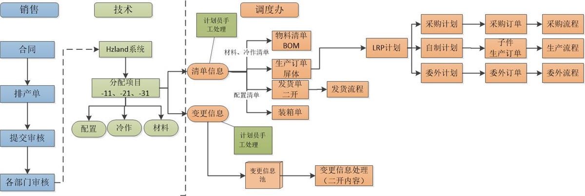 3)銷售到設(shè)計(jì):通過客戶自己的hzland系統(tǒng),對(duì)客戶訂單進(jìn)行設(shè)計(jì)生產(chǎn),拆分成配置清單、冷作清單、材料清單;