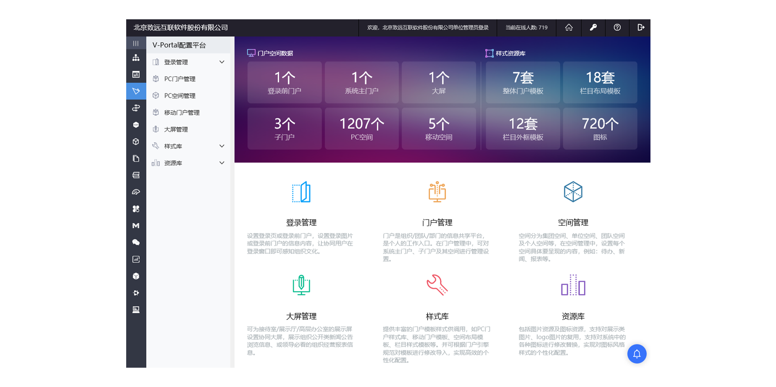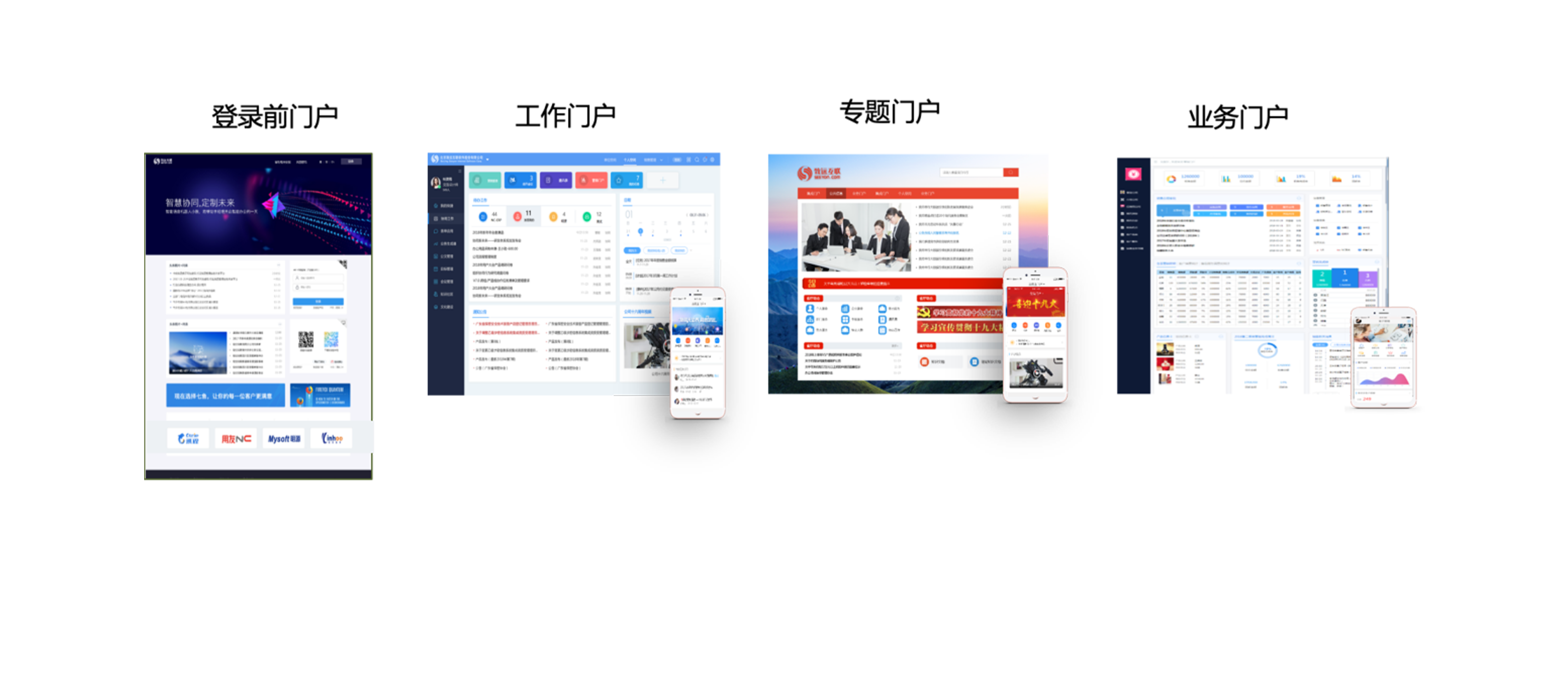 包括:登錄前門戶、系統(tǒng)主門戶、職能門戶、業(yè)務門戶、專題門戶…… 自定義logo、皮膚、布局、欄目主題、欄目內(nèi)容等。