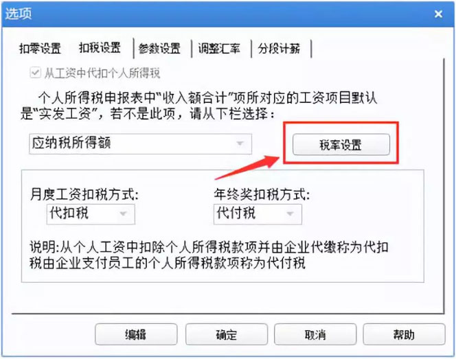 1、在薪資管理-設置-選項-扣稅設置中,點擊稅率設置,調(diào)整基數(shù)和稅率表。