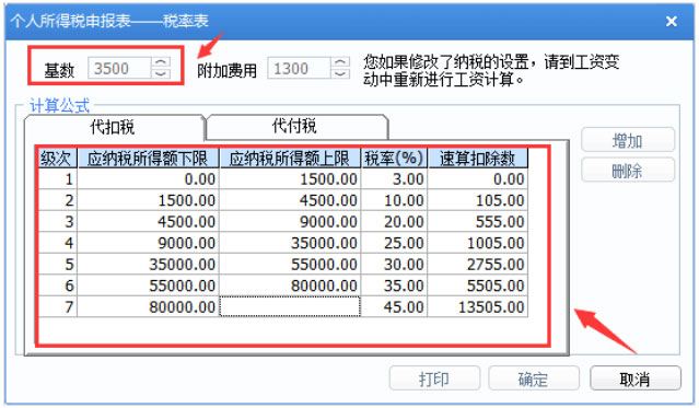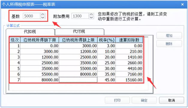 2、調(diào)整參考如下:1>調(diào)整基數(shù)為5000;2>調(diào)整各級次的應納稅所得額上、下限及速算扣除數(shù)。