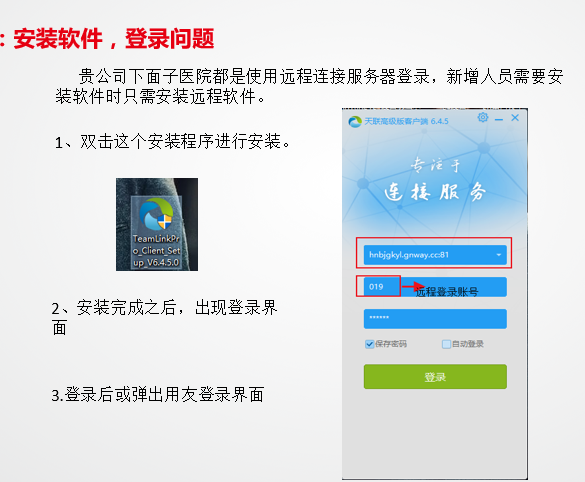 佰駿醫(yī)療公司下面的用戶都是遠(yuǎn)程操作的,而且是剛開始接觸使用系統(tǒng),所以存在很多疑惑的地方,這次培訓(xùn)我們主要針對(duì)他們公司平時(shí)出現(xiàn)的服務(wù)問題進(jìn)行了一個(gè)總結(jié),將問題融入課件,以便加深他們的理解。