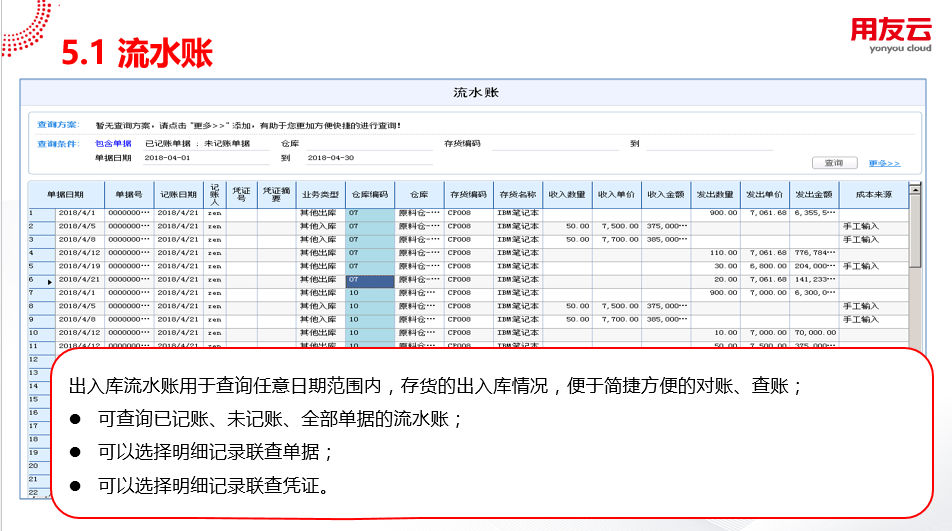存貨核算系統(tǒng)針對企業(yè)存貨的收發(fā)存業(yè)務(wù)進行核算,掌握存貨的耗用情況,及時準(zhǔn)確地把各類存貨成本歸集到各成本項目和成本對象上,為企業(yè)的成本核算提供信息,并可動態(tài)反映存貨資金的增減變動情況,提供存貨資金周轉(zhuǎn)和占用的分析,在保證生產(chǎn)經(jīng)營的前提下,降低庫存量,減少資金積壓,加速資金周轉(zhuǎn),具有及時性、可靠性和準(zhǔn)確性。